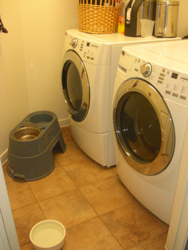 2. This laundry room. I HATE this laundry room. I scream at this room daily. It is tiny, crowded, the washer/dryer hookups are backwards from our machines so the doors open into each other instead of out. It’s the only place we have to put Hank’s water and food bowl. Water- everywhere. Clean dry clothes fall into the water. Ugh- I hate it.