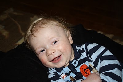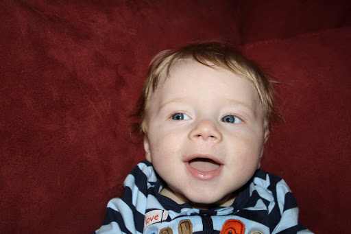 But then Grayson woke up, and started to fuss. I just couldn’t listen to the tummy-screaming at that moment so I picked him up, lifted him in the air, and sang “Doo, doo, doo, doo, doo”. Well, apparently to a 4 month old, “Doo, doo, doo, doo, doo” while being hoisted in the air is freakin’ hilarious. He laughed. He didn’t just smile and coo like he normally does when he “laughs”, but this was a true belly laugh. So we kept doing it. And it was funny stuff. And it made me laugh, and cry too. Because it didn’t make the crap go away. But Grayson taught me that we can still have fun all day, even with his imperfect eyes and delayed motor skills.