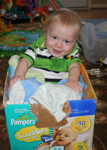 So we’ll keep plugging along- it’s a marathon, not a sprint, right? Our next goal- independent sitting. G’s probably still a few months from reaching that goal, but we are working hard. Our newest therapy tool- a diaper box. Gotta love free equipment!