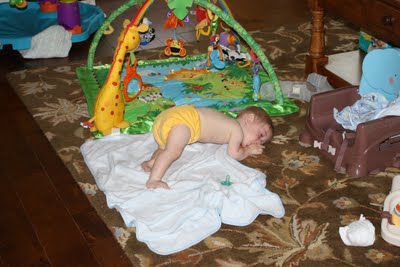 This post is already a novel, but I have to brag on my little boy- this week, Grayson started grabbing toys in front of him! This is a HUGE accomplishment for him! He doesn’t grab everything, but if I put his favorite toys in front of him- his rattle or his cow- he will clutch them and bring them to his mouth. Go Grayson!