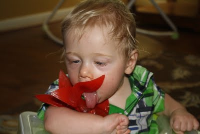 Well, we all survived the weekend. Ryan and I attended a marriage conference in Kerrville- we had some good talks about the future of our family, slept two uninterrupted nights without dogs in our bed and a baby monitor by my ear, and got a private tour and wine tasting at a vinyard/winery near Fredricksburg. Grayson had a great time with his Grammie and Grandaddy and even slept 13 1/2 hours on Friday night! He does have some kind of a bug- not sure what, but he has a rash on his face, loss of appetite (grrr, I need this kid to EAT), and has kept me very busy with diaper changes today (ick). We saw the pediatrician last Thursday because I was worried he might have an ear infection- nope. We will see her again this Thursday for his 9 month checkup- my goal is to not have to see her between last Thursday and this Thursday. We’ll see.