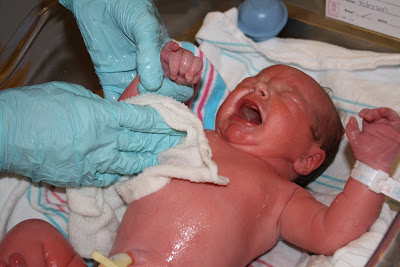 Charlotte’s birth story has little to do with the physical aspect of how she was born, although that went extrememly well and was just as amazing the second time around as it was the first. I am so blessed that I’ve had two births that were uncomplicated, not too painful, and quick (I pushed 5 times). Oh, and note to those going for the medicated births like me- this time, I got the epidural before the pitocin, and yeah, huge difference! But really, the labor and delivery part was pretty standard…mild contractions all day Saturday, went to hospital Saturday night when they got closer together, labored all night without much progress, doctor broke my water in the morning, got epidural and pitocin which sped things up considerably, and she was born at 11:30. Bonus: I didn’t puke at all this time like I did with Grayson!