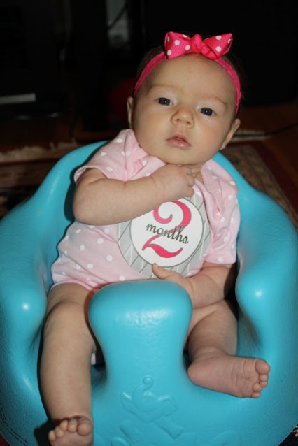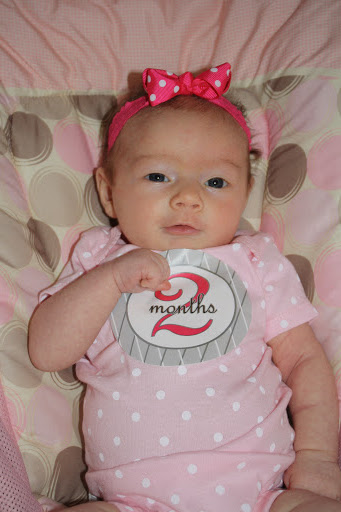 1. Holy cuteness! I can barely handle that sweet face and her pink polka dot bow. She is just so precious!!! I'm sorry, she is two months old already? what? Ack! Slow that girl down! :o) Kidding of course. I am so happy she is doing so wonderful and has helped you heal, truly a miracle. Love her!