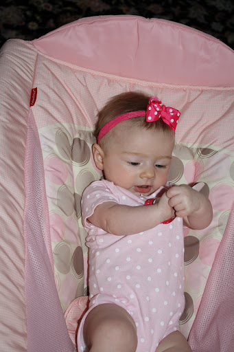 You still love to eat, and are so far exclusively breastfed. You are a petite little girl, weighing 11 pounds, 4 ounces. You wear 3 month clothes and size 1 diapers. You have started to show some interest in toys, particularly ones that light up and play music (hmm, sounds like someone else I know). You can roll over, but you hate tummy time so much that you don’t show off that skill very much yet.