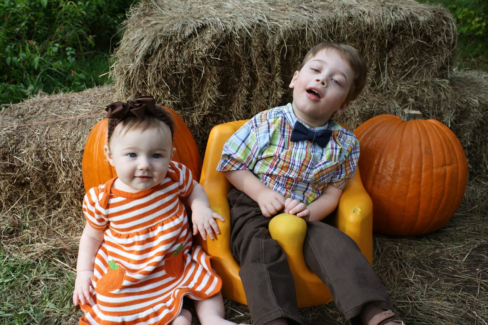 1. I can't stop laughing!!!! That is too funny, but good news, the three cuties shine so bright I barely even noticed the pumpkins!!!!! Love C in her pumpkin dress and G is too cute