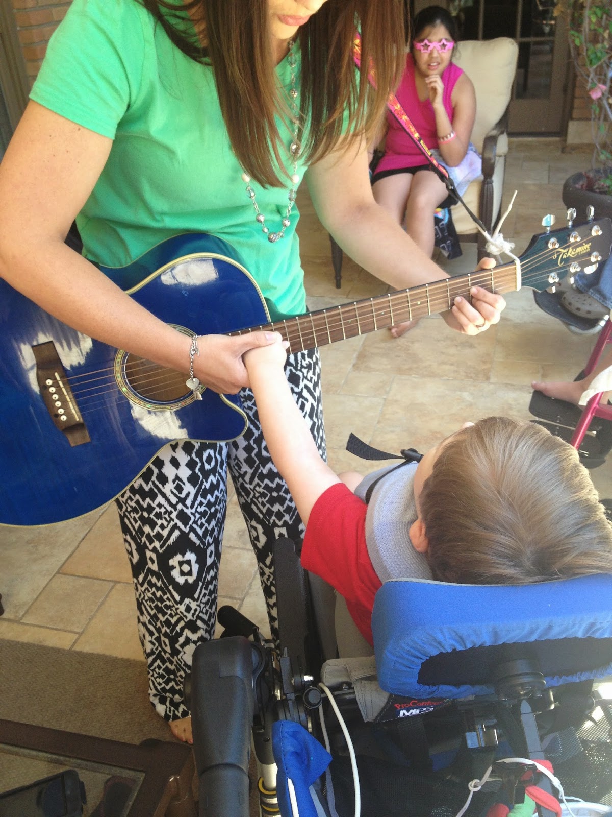 Friday was the annual year-end party for Grayson’s school. I left Charlotte with a friend and got to spend a few precious hours relaxing by the pool with just my little guy. The school’s music therapist did a session at the party- Grayson LOVES the guitar. Too bad I don’t play!