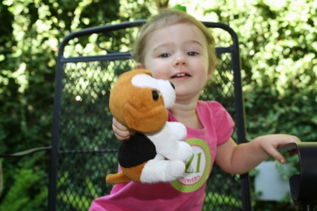 - Finally have a security object. About a month ago, we took care of your cousin Theo’s dog Milton for a few days, and they gave you a stuffed “Milton” as a thank you. Now, you won’t go anywhere without Milton. He sleeps with you, rides in the car with you, and has to watch you eat your meals and take your bath.