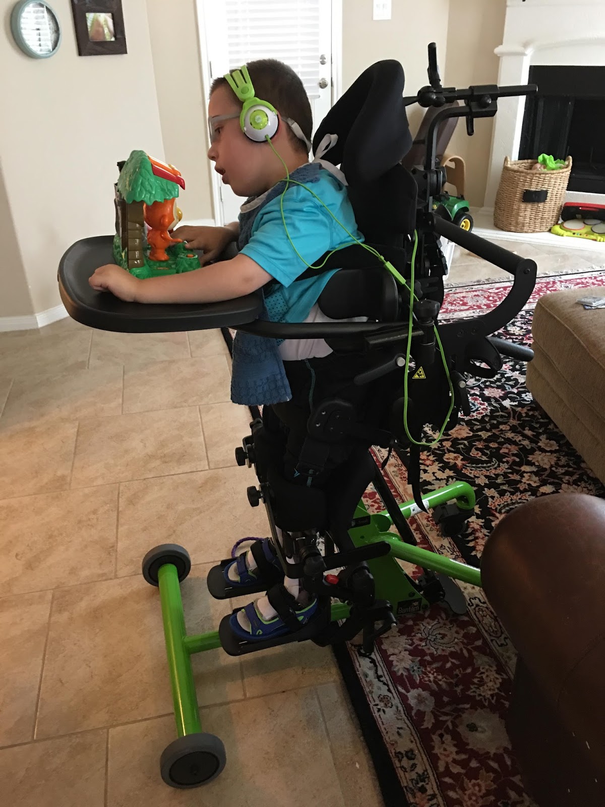 Grayson has speech therapy twice a week. For months, he has been working on hitting a button to activate a toy. Our hope is that some day he will be able to use some sort of communication device, but he’ll have to have some eye hand coordination for that. As you can see in the video, he is working SO hard, but his brain and his eyes and his hands just don’t quite talk to each other correctly. But he’s getting there, and it’s an incredible thing to watch.